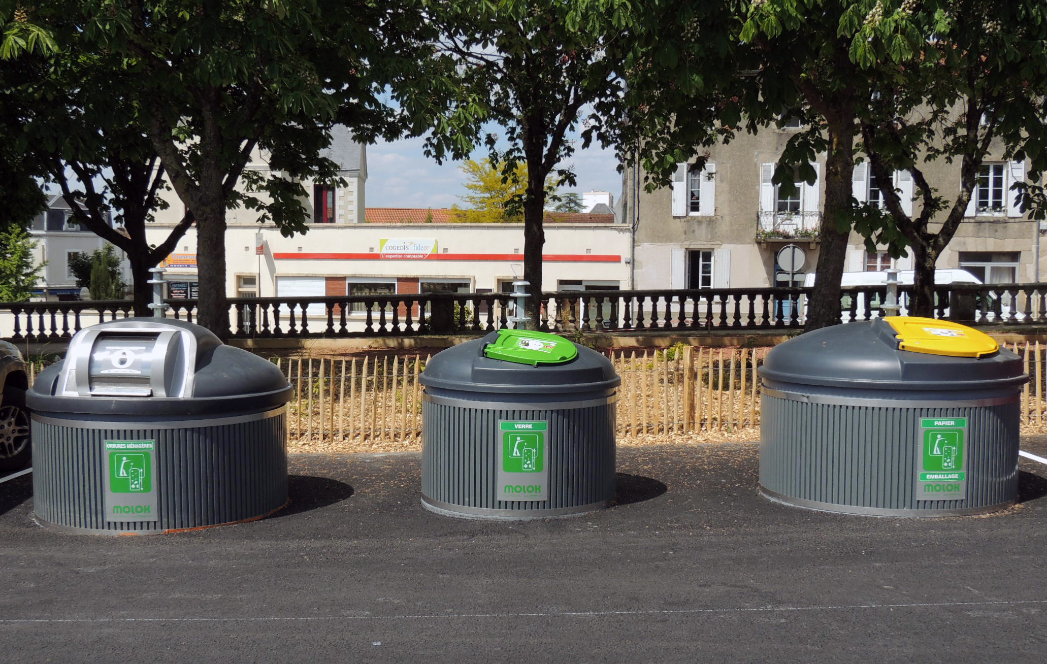 - installation de points d’apport volontaire composés de 3 conteneurs en libre accès 24h/24 et 7j/7. Un pour les ordures ménagères, un pour les emballages et les papiers et un pour le verre
